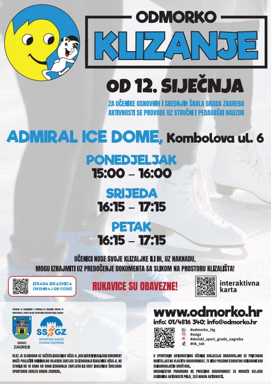 Učenici će u okviru programa moći slobodno klizati na klizalištu Admiral Ice Dome te slobodno plivati na bazenima Jelkovec, bazen Utrina, bazen Iver i bazen Svetice.