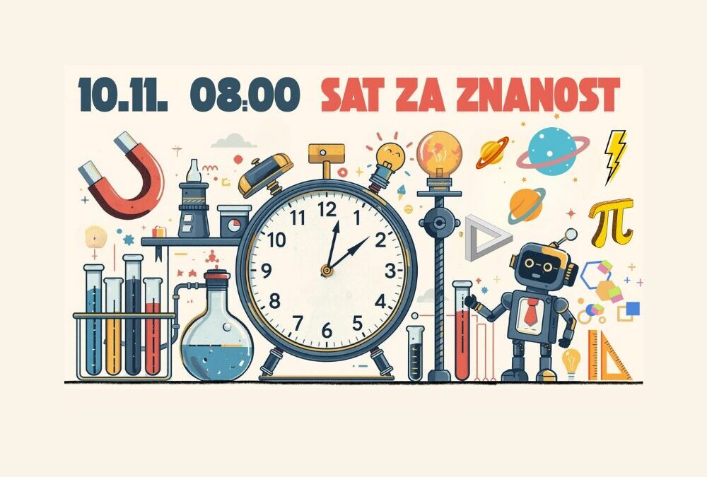 Dana 10. studenoga 2025. održan je “Sat za znanost” – međunarodno besplatno online događanje povodom Svjetskog dana znanosti, u organizaciji udruge “stemKA” i suradnika. Ponuđeno je 16 predavanja za učenike osnovnih i srednjih škola. Naši su učenici 8.b razreda na satu biologije (prof. Josipa Broz Boroja) odslušali predavanje “Od gena do nas – priča o DNA” dr.sc. Marka Košičeka, dok su učenici 8.a slušali “Znanost + YouTube + TikTok = ?” koje je održao Gregor Čavlović, astrofizičar, pisac i redatelj.