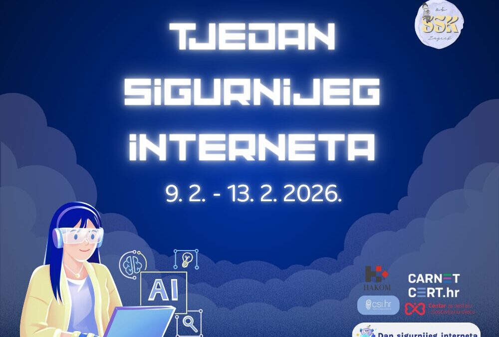 Od 9. do 13. veljače 2026. u našoj školi obilježavamo Tjedan sigurnijeg interneta. Tijekom tjedna na nastavi informatike učenici će sudjelovati u radionicama i edukativnim aktivnostima povodom Dana sigurnijeg interneta, koje potiču sigurno i odgovorno ponašanje na internetu.